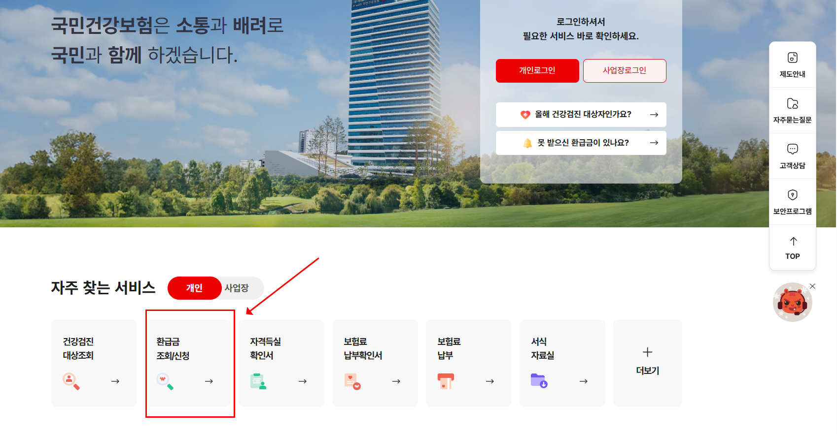 국민건강보험공단에서 환급금/조회/신청 확인